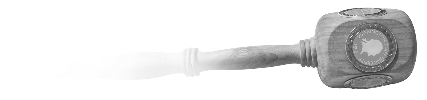 The University Mace, a traditional symbol of authority, will lead the faculty processional today. The WSU Tri-Cities Mace was designed and crafted by David Fassler of the WSU Tri-Cities Integrated Academic Technologies department. The 28-inch mace was carved from a walnut tree that had grown on his property in Pasco. Walnut was chosen to represent the strength and stability our campus gets from the greater Tri-Cities community. On the head of the mace, there are gold and silver medallions on each of the five sides: one engraved with the WSU seal, one engraved with a WSU Tri-Cities seal and three others engraved with the six colleges on the WSU Tri-Cities campus. When not in use for the commencement ceremony, the University Mace is housed in a display case at the south entrance to the East Building on the WSU Tri-Cities campus.
